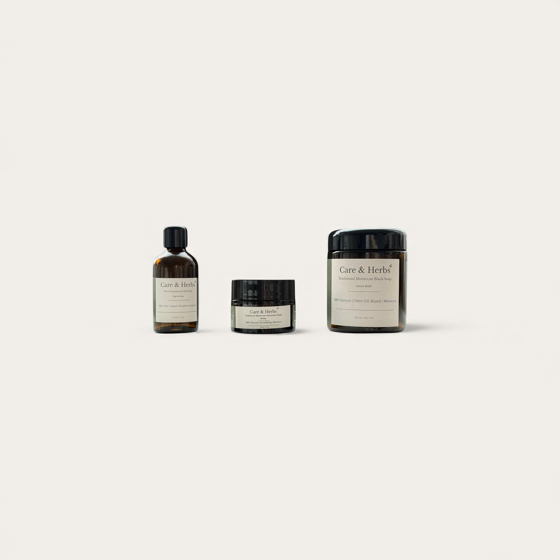 A warm, traditional cleanse that softens, exfoliates and calms the skin. Together, these three essentials recreate the grounding care of a Moroccan hammam at home. If purchased individually, the combined value of these products is higher.